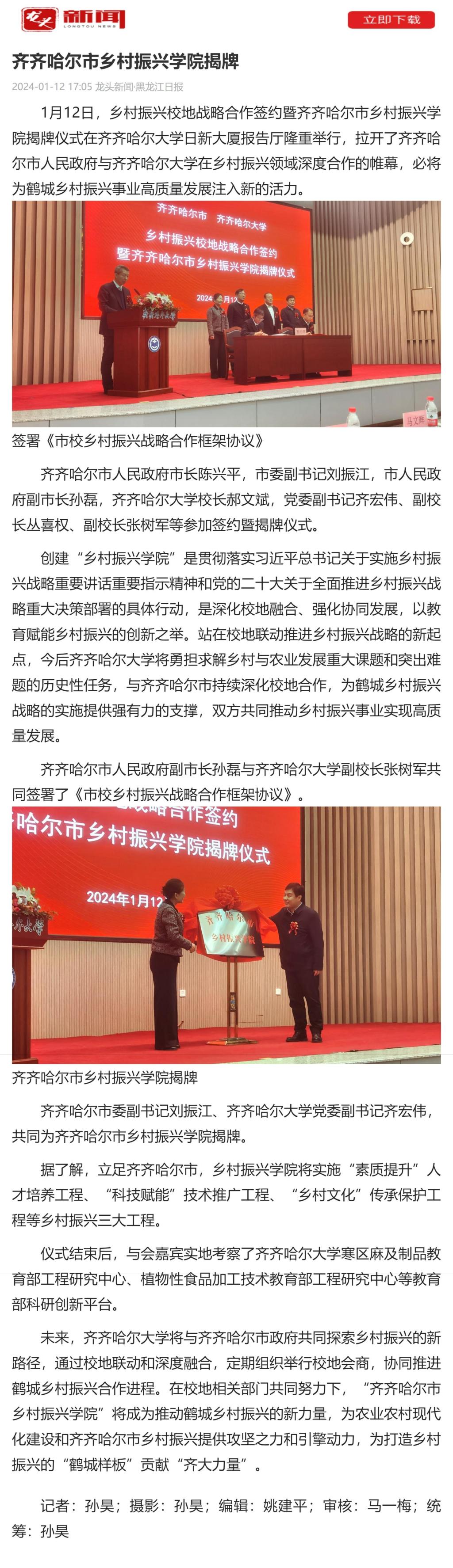 下一條:【龍頭新聞】齊齊哈爾:深化校地戰(zhàn)略合作 共譜鄉(xiāng)村振興新篇