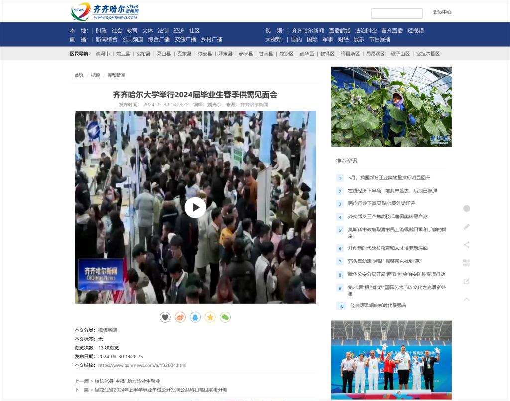 下一條:【齊齊哈爾新聞】齊齊哈爾大學(xué)2024屆畢業(yè)生春季供需見(jiàn)面會(huì)
