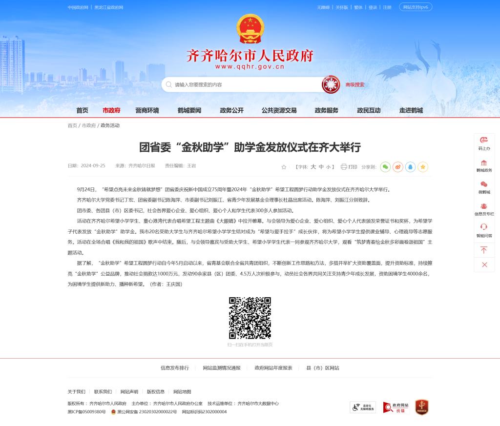 下一條:【新華網(wǎng)】“金秋助學”希望工程圓夢行動舉行 4000余名困境學生得到資助