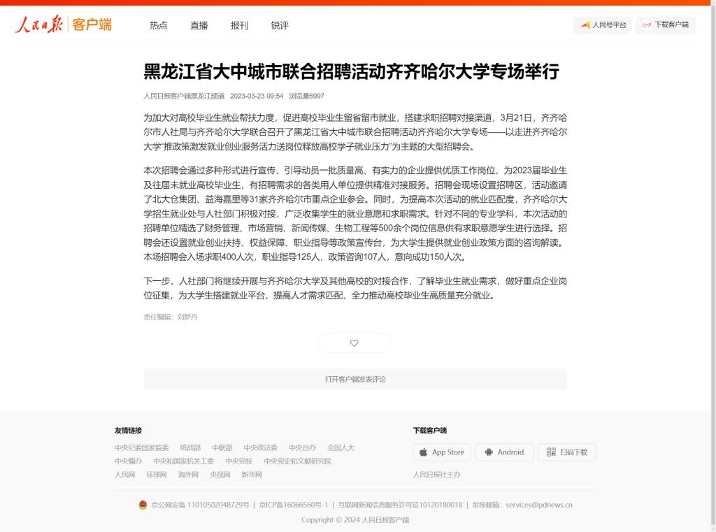 下一條:【新浪網(wǎng)】黑龍江省大中城市聯(lián)合招聘活動齊齊哈爾大學專場舉行