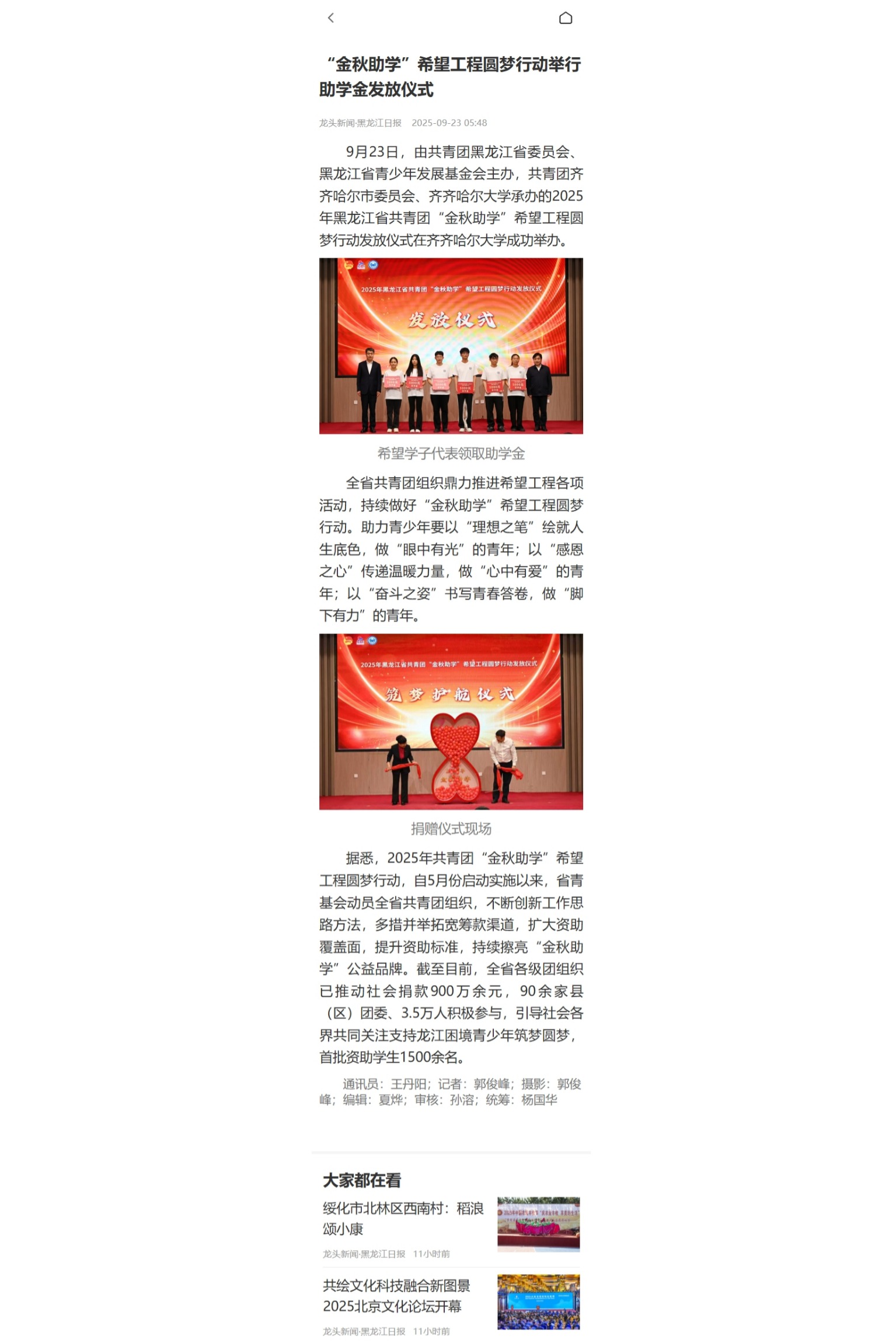上一條:【中國(guó)青年網(wǎng)】黑龍江舉辦“金秋助學(xué)”希望工程圓夢(mèng)行動(dòng)發(fā)放儀式