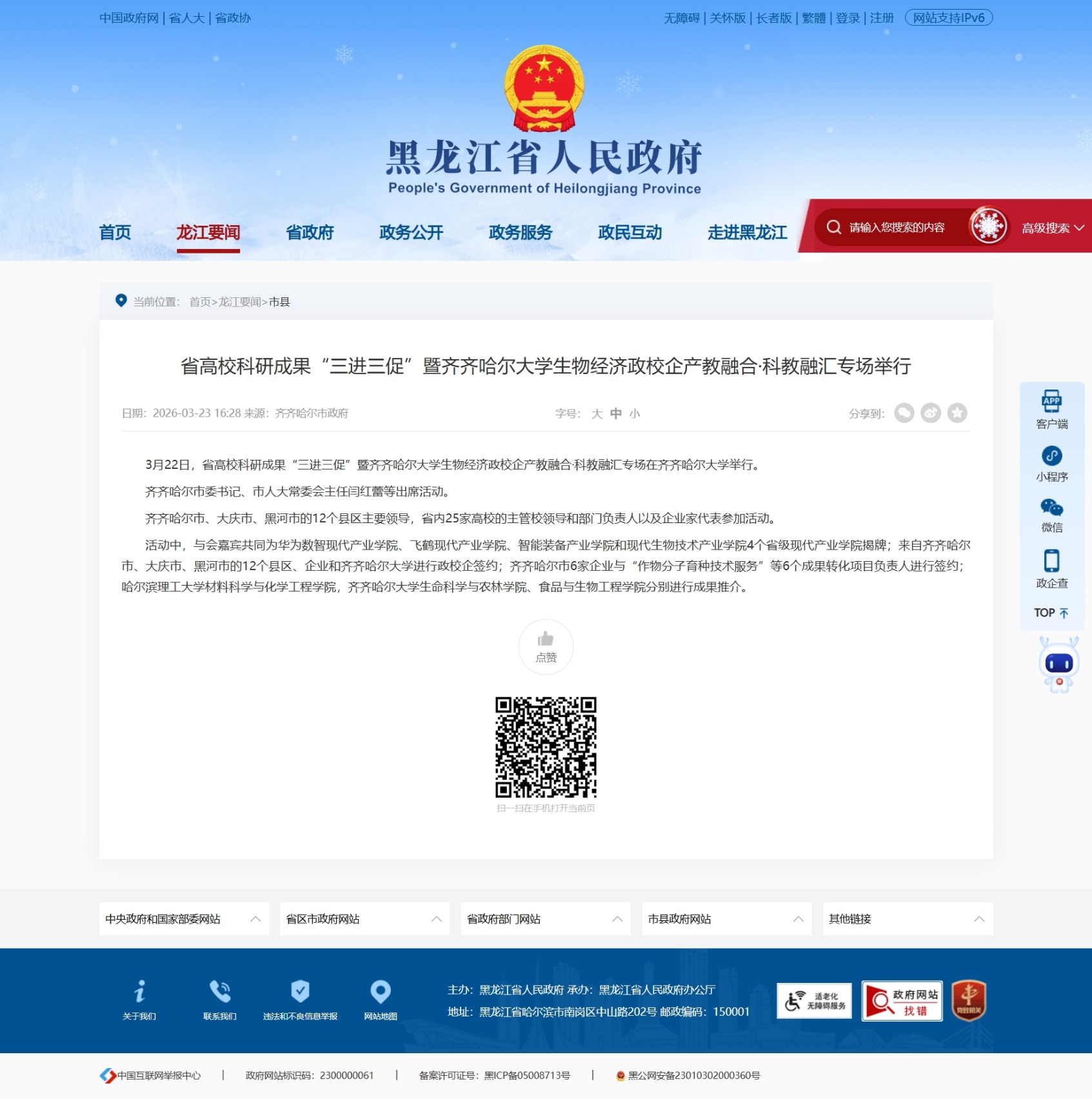 下一條:【齊齊哈爾日?qǐng)?bào)】省高??蒲谐晒叭M(jìn)三促”暨齊齊哈爾大學(xué)生物經(jīng)濟(jì)政校企產(chǎn)教融合·科教融匯專場(chǎng)在我市舉行