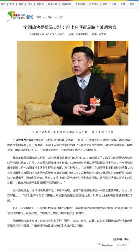 下一條:【網(wǎng)易新聞】全國政協(xié)委員馬立群:禁止在瀝青馬路上晾曬糧食