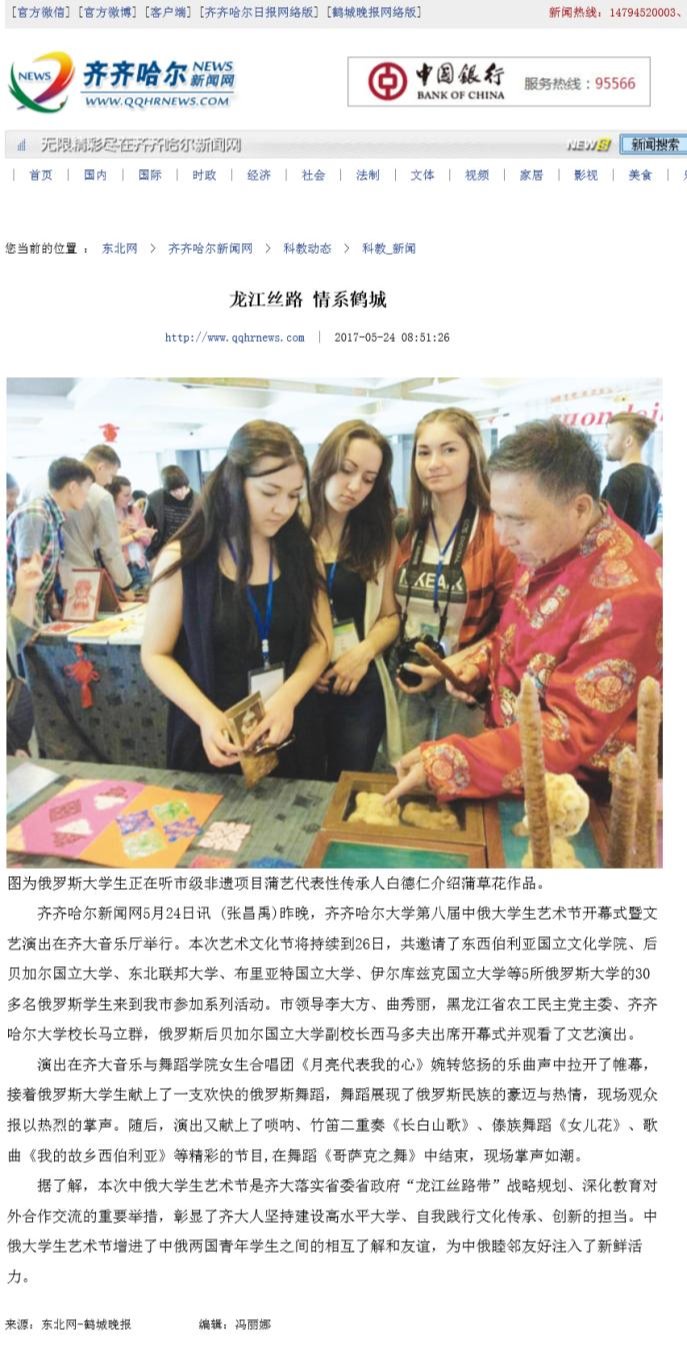 下一條:【齊齊哈爾新聞網(wǎng)】齊齊哈爾大學(xué)第八屆中俄大學(xué)生藝術(shù)聯(lián)歡節(jié)開(kāi)幕