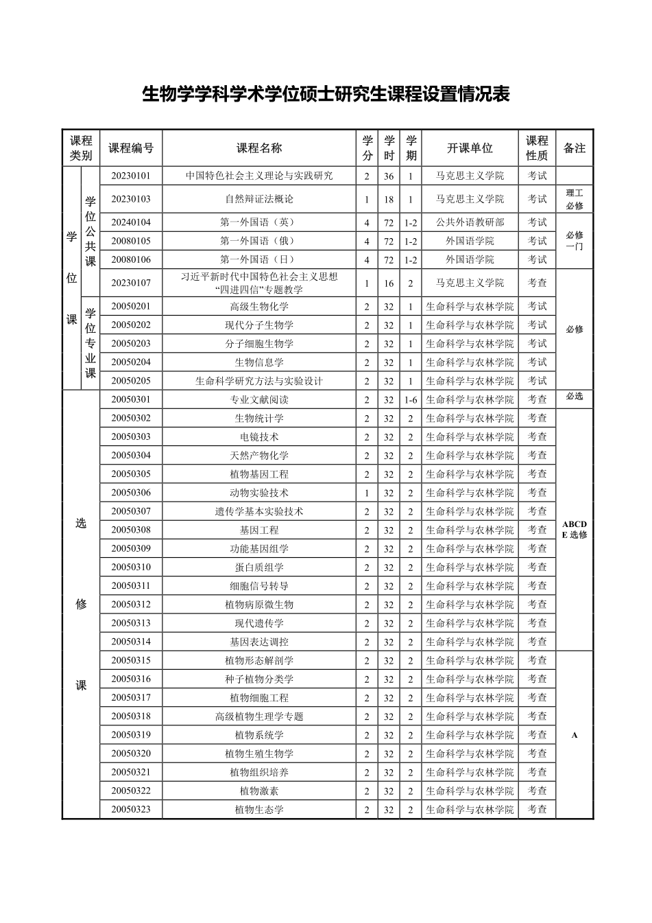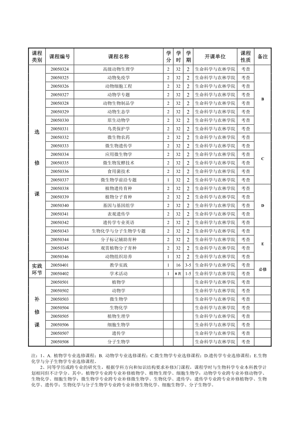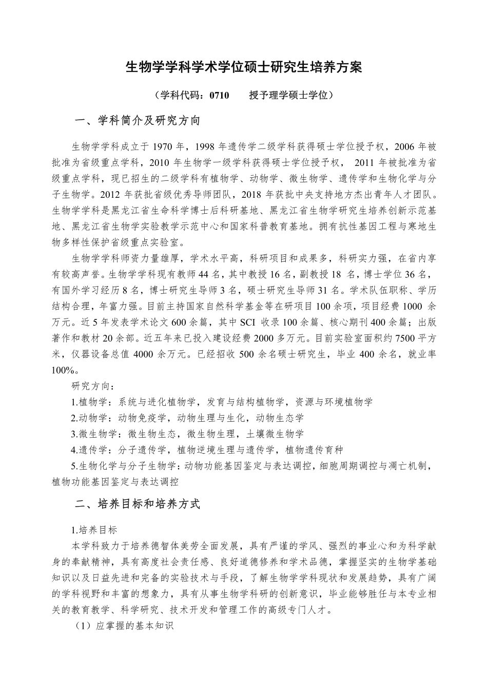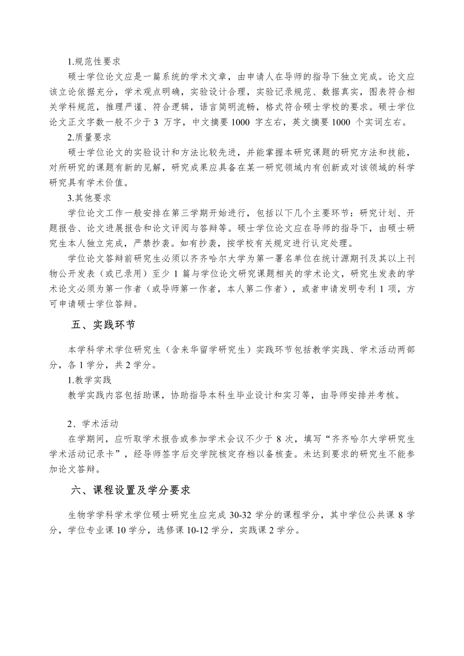 生物學(xué)學(xué)科攻讀碩士學(xué)位研究生培養(yǎng)方案
