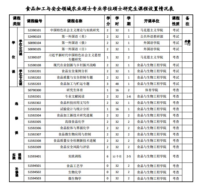 食品加工與安全領(lǐng)域農(nóng)業(yè)碩士專業(yè)學(xué)位研究生培養(yǎng)方案