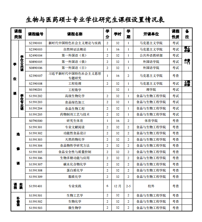 生物與醫(yī)藥類別碩士專業(yè)學(xué)位研究生培養(yǎng)方案