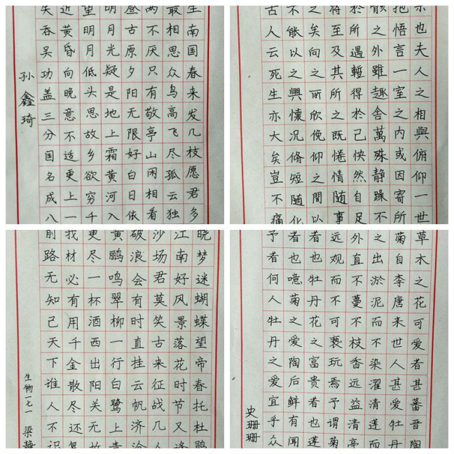 我院歷來高度重視生物科學師范生教學技能和“三筆字”書寫技能培訓工作。我院聘請中國書畫院一級美術(shù)師、齊齊哈爾市書法家協(xié)會理事、高級實驗師呂建偉老師作為課外輔導教師。呂老師始終以高度的責任心和使命感,精心組織和安排師范生的“三筆字”課外輔導工作。自今年開學初學校建成“三筆字”書法教室后,呂老師配合學校開設的《書寫技能》課程,利用自己業(yè)余時間,對我院2017級生物科學師范生進行了為期兩個月的課外輔導,受到了顯著的成效。