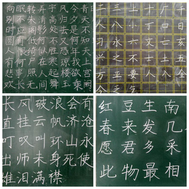 本次比賽分粉筆字組和鋼筆字組,參賽選手們紛紛展示了各自書法的表現(xiàn)風格和書寫能力。既有一氣呵成、筆畫遒勁、筆勢生動的粉筆字書法,也有錯落有致、剛?cè)岵匿摴P字書法。經(jīng)過激烈的角逐,粉筆字組的孫佳藝、李想、白小麗,鋼筆字組的韓靜鑫、陳鏡屹、史珊珊分別獲得本次比賽各組別的一等獎。本次比賽,為學生搭建一個鍛煉自己、展示風采的平臺。