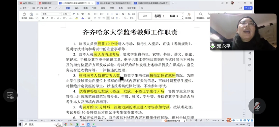 為順利完成本學(xué)期教學(xué)工作,安排布置期末考試工作,確保考試順利,規(guī)范試卷資料存檔,嚴(yán)明考試考場(chǎng)紀(jì)律,落實(shí)監(jiān)考、巡考要求,12月21日19:30,我院線上召開(kāi)了期末考試考務(wù)培訓(xùn)會(huì),本次會(huì)議由教學(xué)副院長(zhǎng)鄧永平主持。