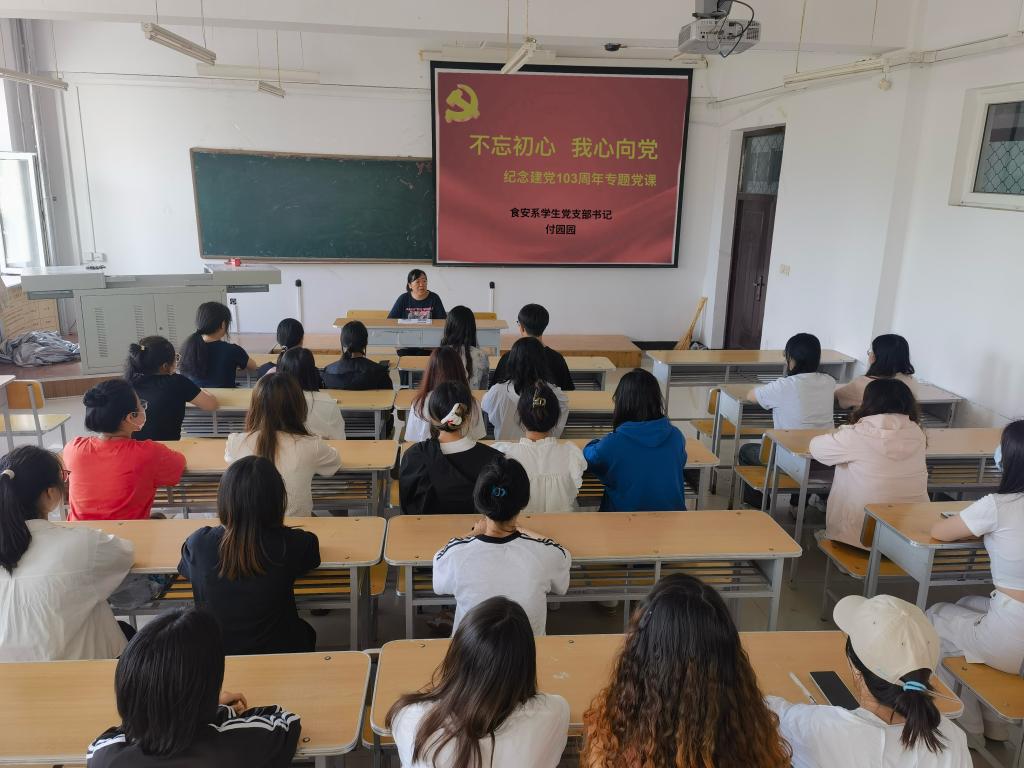 為深入學習貫徹黨的二十大精神,激勵引導廣大黨員弘揚偉大建黨精神,賡續(xù)紅色血脈,用擔當詮釋初心,以實干踐行使命,我院食品質量與安全系學生黨支部于2024年6月27日在西二區(qū)7教328多媒體教室開展“不忘初心 我心向黨”紀念建黨103周年專題黨課活動,支部全體黨員參加活動,本次黨課由食安系學生黨支部書記付園園主講。