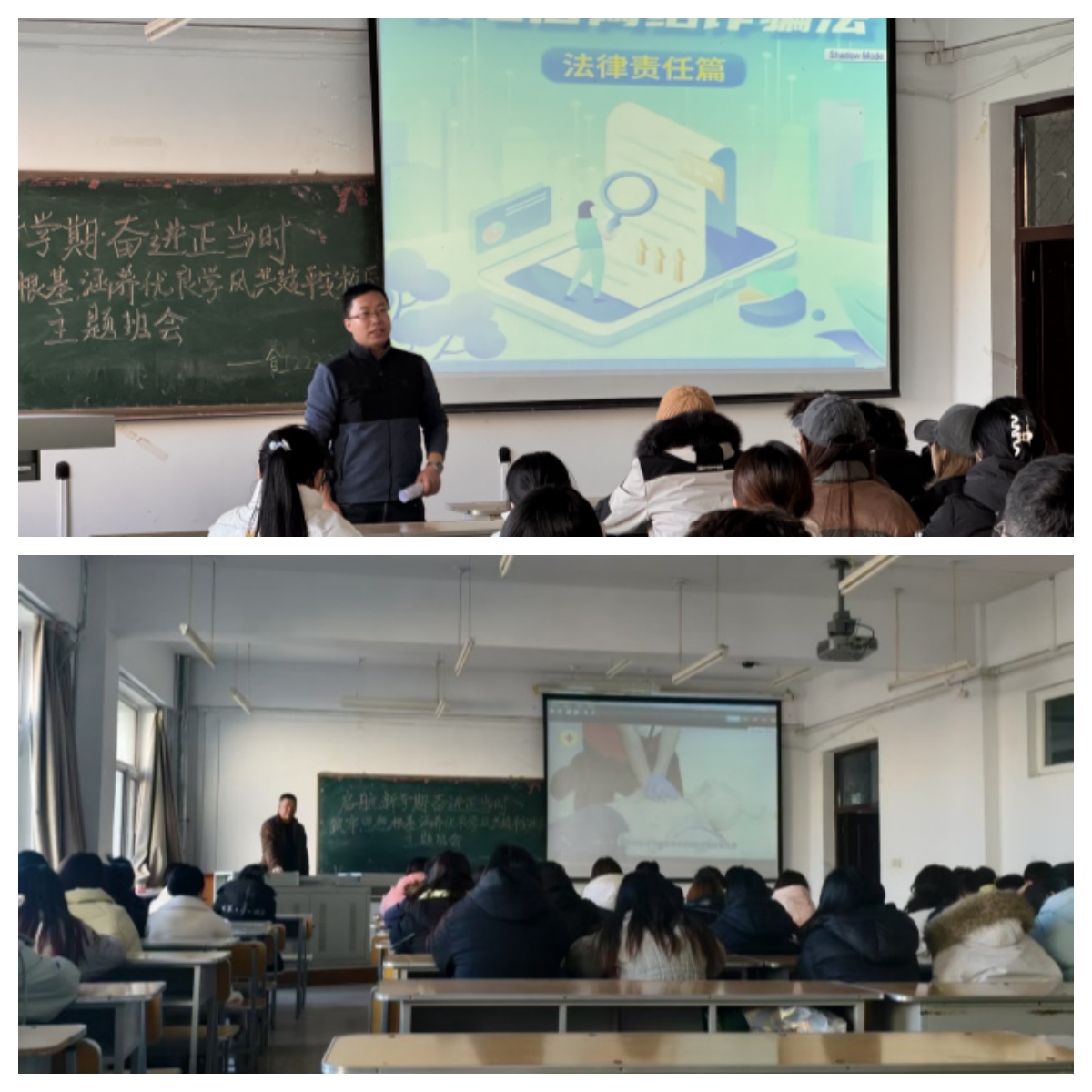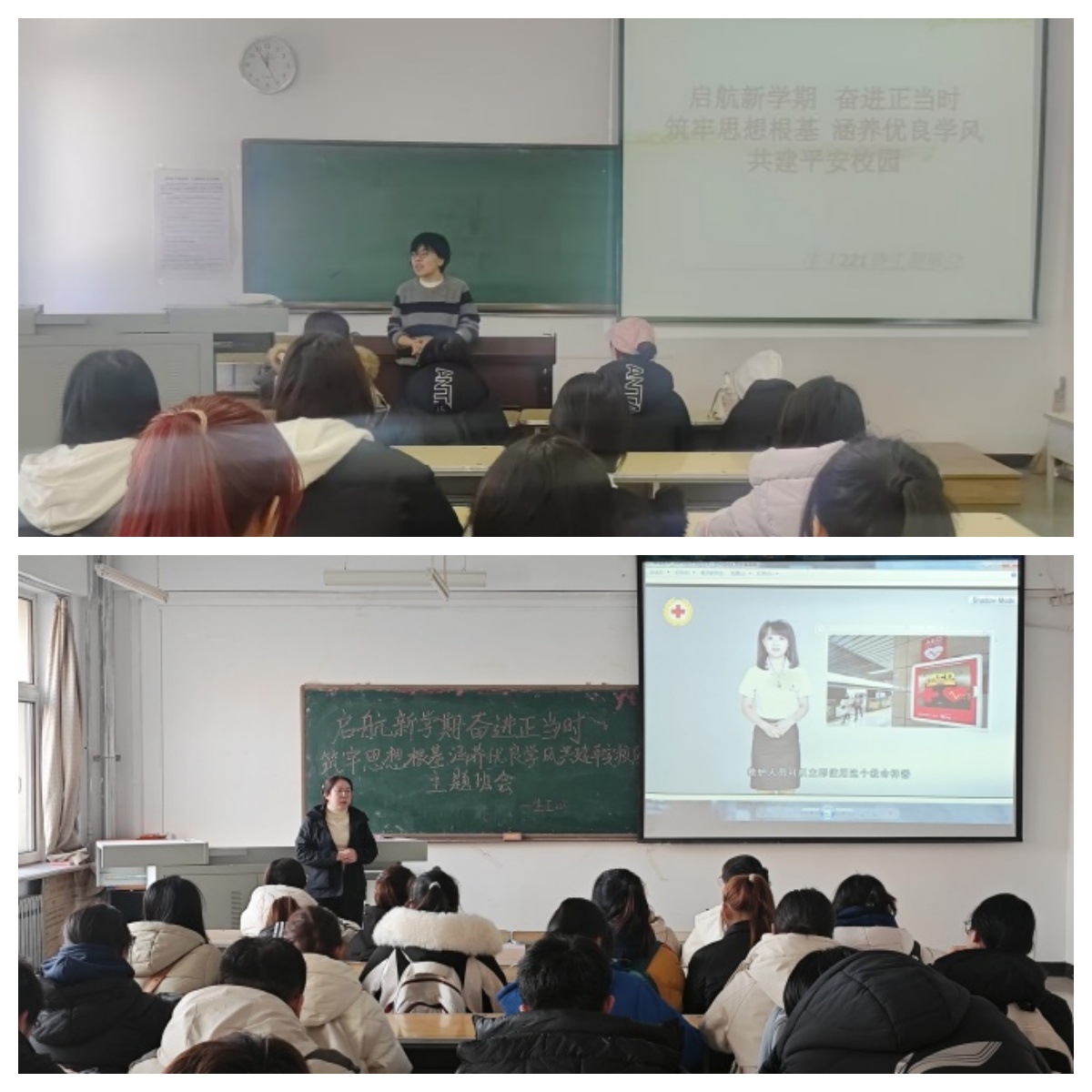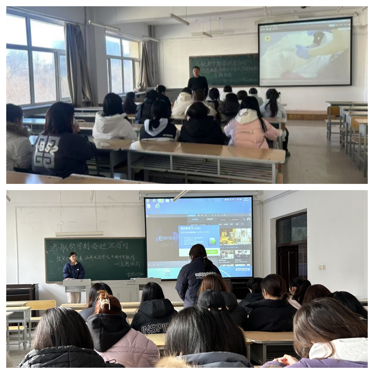發(fā)布日期:2025-03-12 點擊量:新學期伊始,為激發(fā)同學們的學習熱情,營造積極向上的學習氛圍,切實引導同學們錨定奮斗目標,筑牢校園安全防線,2025年2月24日—3月10日,我院按照學校通知要求,各班級班主任采取線上線下相結合的方式組織召開了以“啟航新學期·奮進正當時——筑牢思想根基,涵養(yǎng)優(yōu)良學風,共建平安校園”為主題的班會活動。學院黨委副書記曲鵬、輔導員列席了部分班級班會。